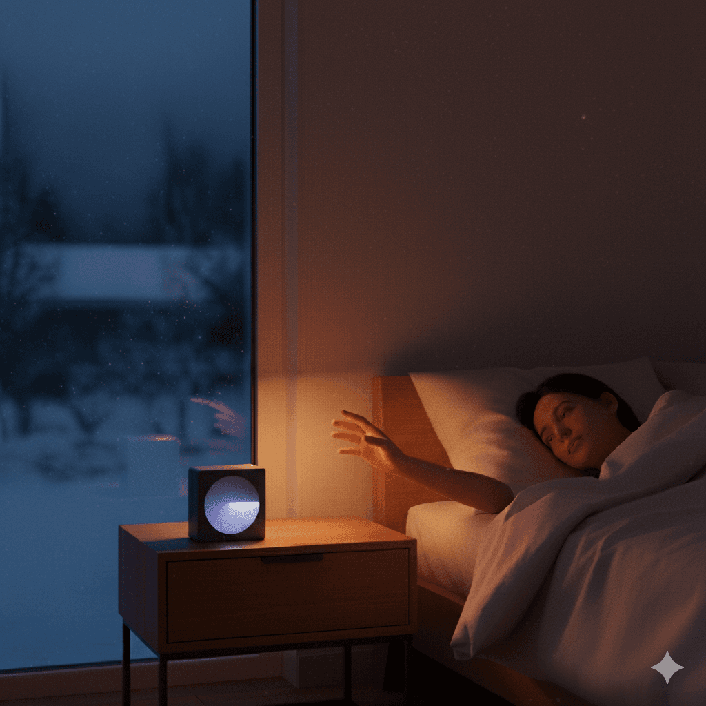 damnsun ersetzt dein Smartphone im Schlafzimmer. Keine grellen Displays, keine Benachrichtigungen – nur du, Licht und ein bewusster Start in den Tag.